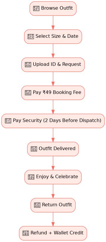 ✔️ The booking fee is just ₹49 – a very small amount that blocks your outfit for the selected date so no one else can rent it.